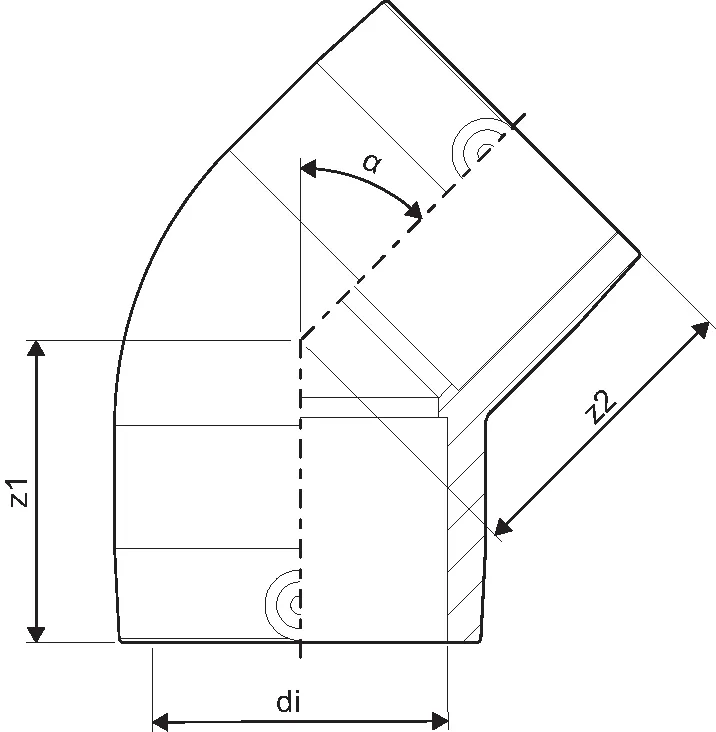 Mounting dimensions Pressure EF Elbow 45 deg SDR11