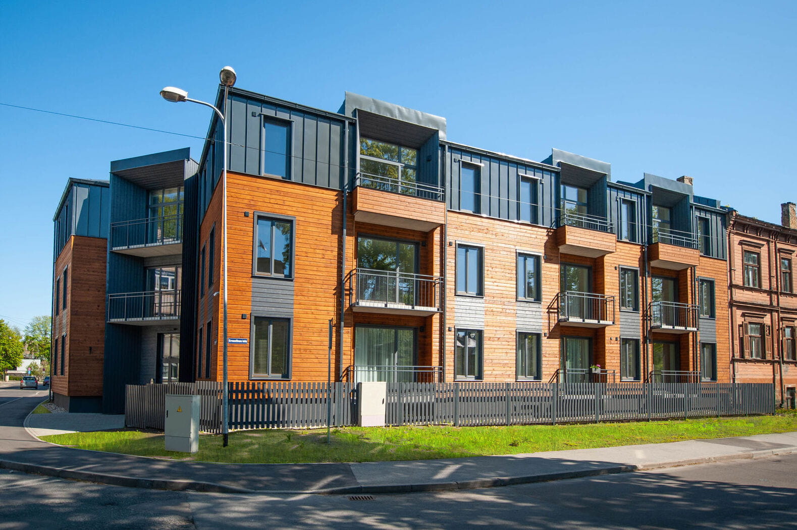 The building is a modern 3-storey stone residential house with natural wood finish. The building has eighteen 2-4 room apartments with quality finishing. On the top floor of the building, the height of the apartment ceiling reaches 3.2 m. Each apartment has a balcony or terrace. A place to experience the unique feeling of Agenskalns, which is typical for the inhabitants of this quiet part of Riga. Harmony in the rhythm of the city. This is the first Hepsor project in Latvia.