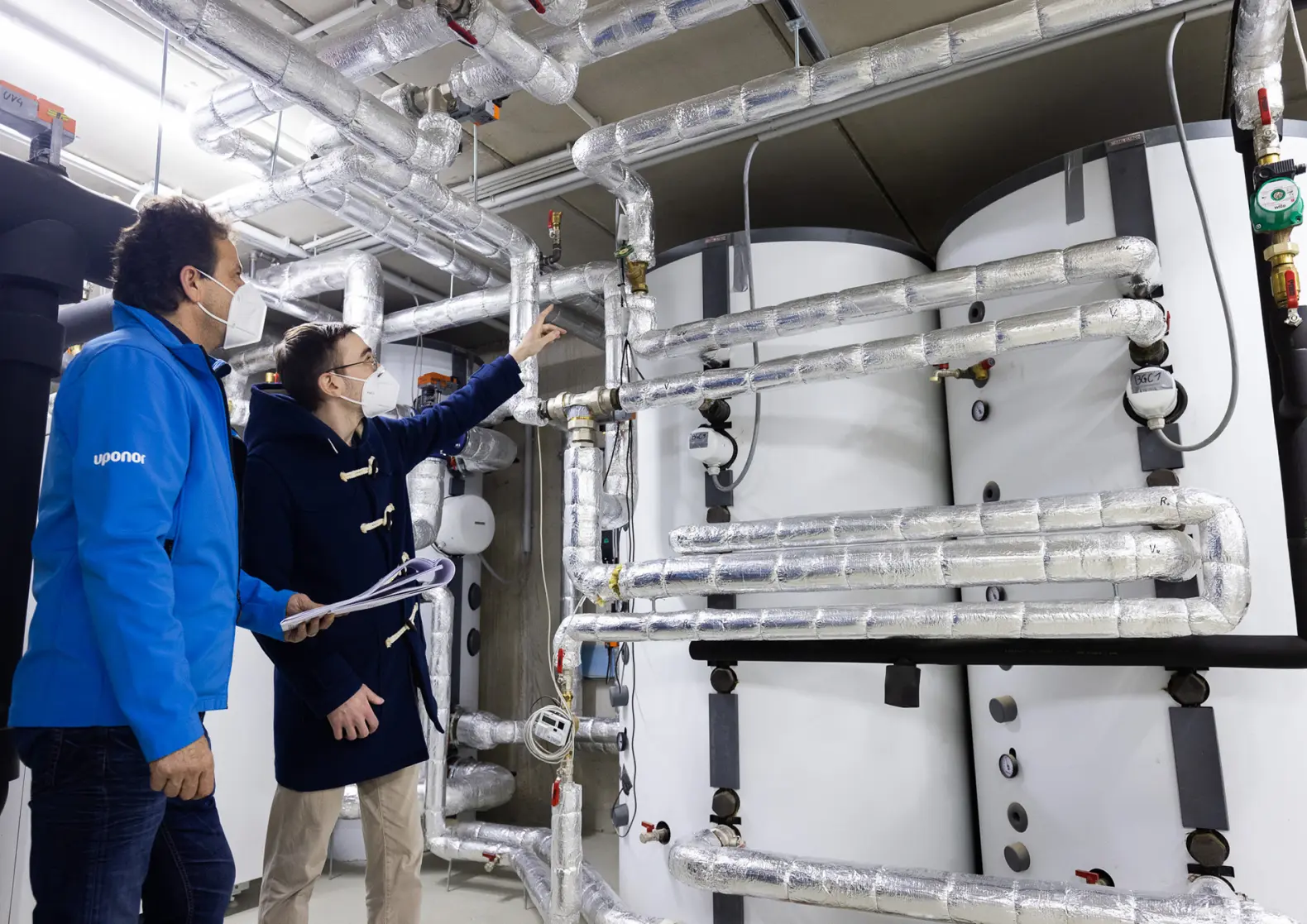 "Throughout the planning, the focus was on building sustainably and enabling ecological living," explains Mach. Accordingly, geothermal energy was chosen as the energy source for heat generation in this project in combination with a heat pump. "This heating technology is particularly efficient when the temperature level only needs to be increased slightly, i.e. the flow temperature of the heating system is low," explains Mach. “That is the case with panel heating. This is one of the reasons why we decided to use Uponor surface temperature control for the entire 1,400 square meters."