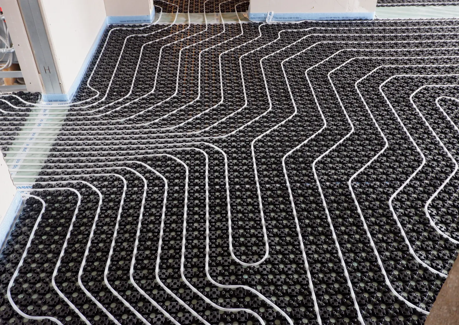 The project in Robinienweg, a ten-millimetre-thick WF wood fiber insulation board from Knauf forms the basis for the panel heating system. Together with the edge insulation strip from Uponor, the board provides good impact sound insulation in the apartment building - compared to before, the impact sound was improved by a total of 20 decibels. To protect the insulation from moisture from the leveling compound and to ensure perfect strength development, a protective layer of soda kraft paper from Knauf is laid on top of the wood fiber insulation board. The basis of the Minitec system are the pipe support elements, the so-called foil elements, which can be quickly and easily attached to the floor thanks to their self-adhesive backing and connected to each other via triangular studs. A 20 millimeter thick layer of N 440 levelling screed from Knauf rounds off the construction in Robinienweg.