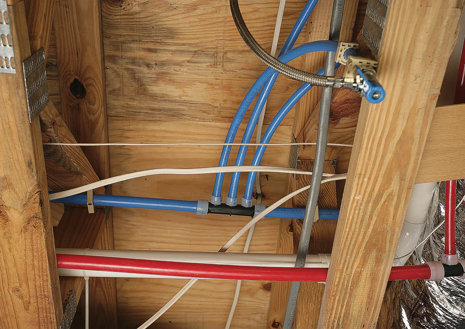 PEX product was less invasive to our house than copper. Because the material is flexible, Marty was able to route the tubing through small holes he cut throughout the house.
