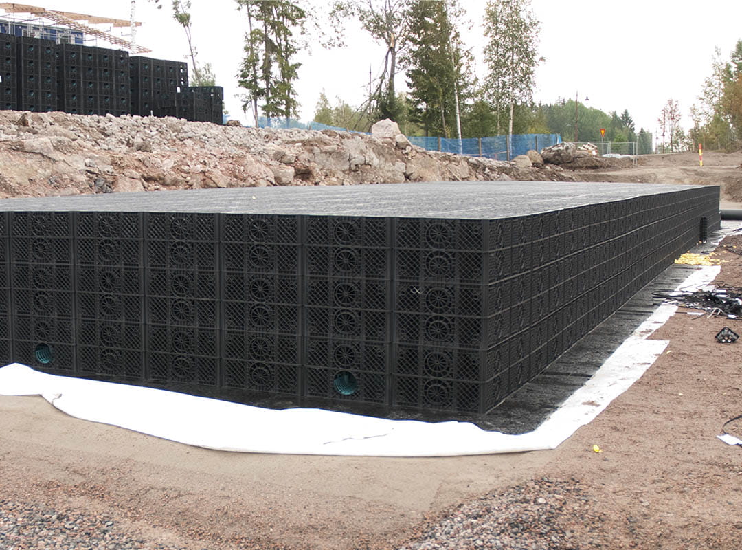 Uponor suunnittelee ja toteuttaa yksilöllisesti mitoitettuja ja ympäristöystävällisiä ratkaisuja kohteisiin, joissa runsas hulevesien kerääntyminen voi muodostaa riski- ja ongelmatilanteita.