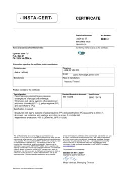 - Täyttää EN 13476 -standardin