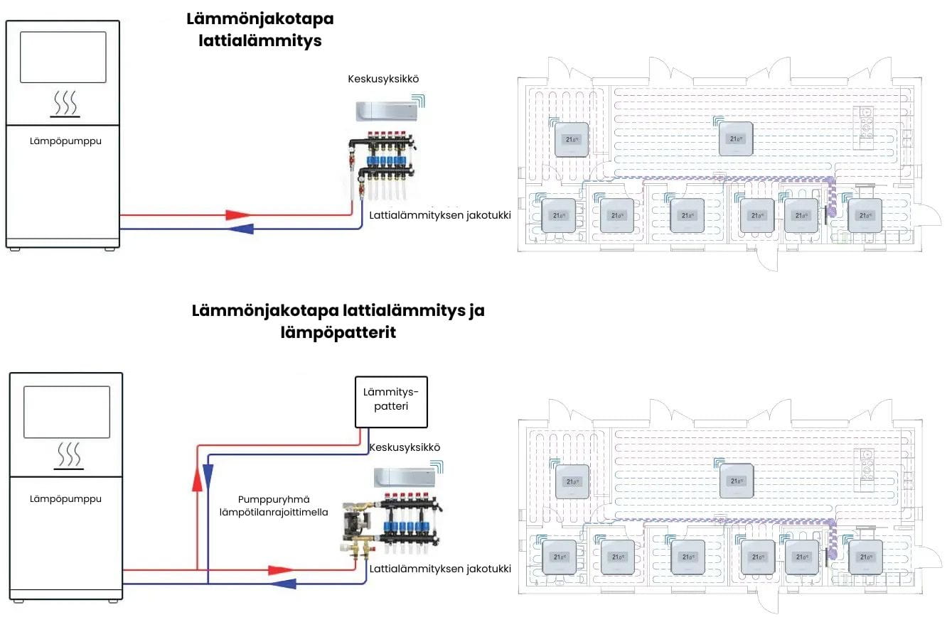 Ongelma voi johtua useasta eri syystä tai näiden yhdistelmästä. Lattialämmitysjärjestelmä koostuu useista eri osista, eivätkä ongelmat ole aina aivan yksiselitteisiä. Ongelmat voivat johtua viallisista tai väärin kytketyistä säätölaitteista, jakotukin väärin (tai ei lainkaan) asetetuista säätöarvoista, lämmönlähteestä, verkostossa olevasta ilmasta, laskennallisten vs. todellisten tehontarpeiden eroista, mahdollisten linjasäätöventtiilien virheellisistä (tai ei lainkaan asetetuista) asetusarvoista, jumiutuneesta jakotukin venttiilistä, pumpusta jne.