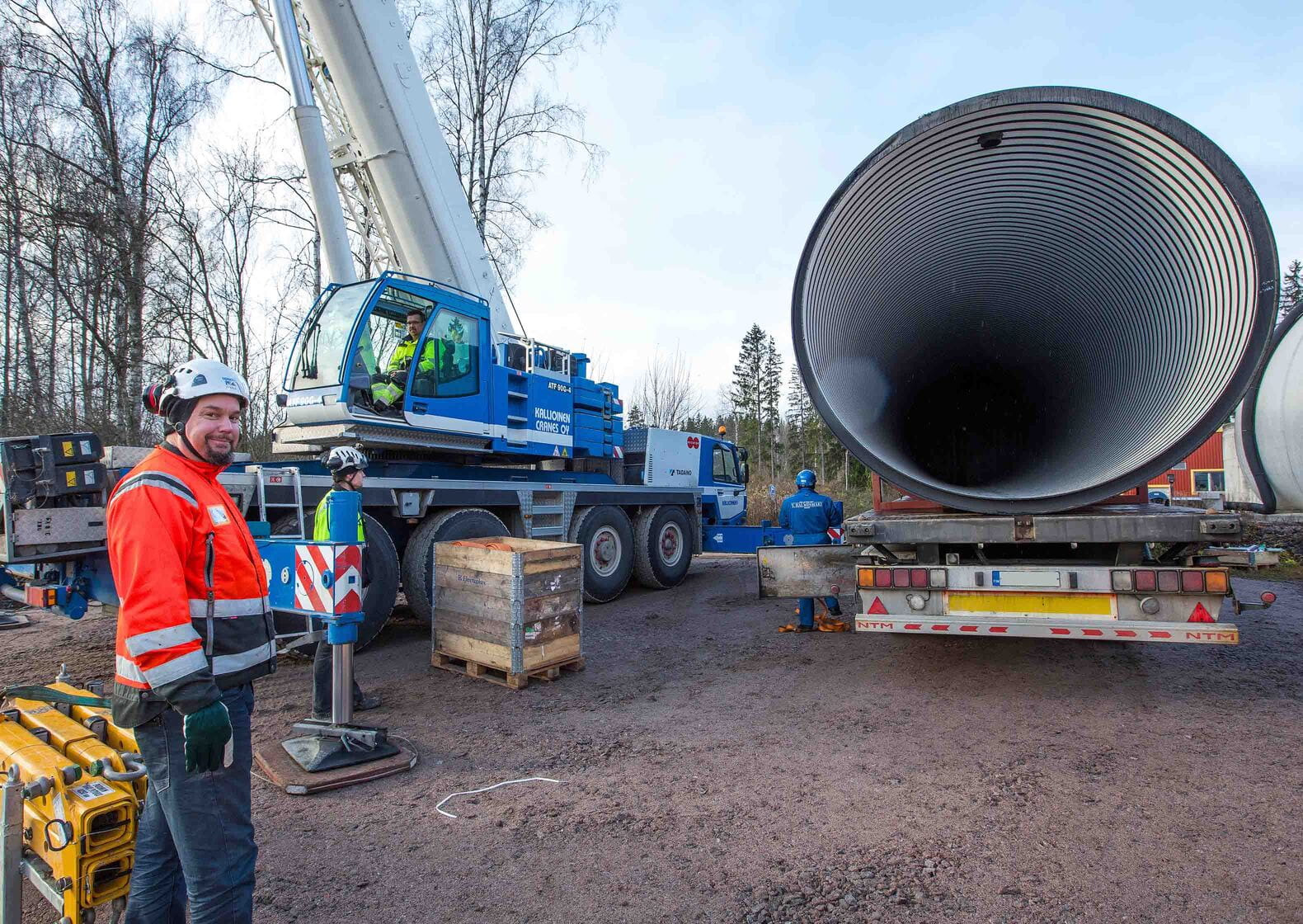 – Säiliöillä on pituutta 30 metriä, joten ne ovat varsin kookkaita. Tilaajalle oli erittäin tärkeää, että säiliöt pystyttiin toimittamaan paikalle kahdessa, 15 metrin pituisessa osassa ja hitsaamaan työmaalla yhteen. Jos säiliöt olisi toimitettu täysimittaisina, puhdistamolle johtavia teitä olisi pitänyt rakentaa uudelleen. Myös itse kuljetukseen olisi tullut lisävaatimuksia.