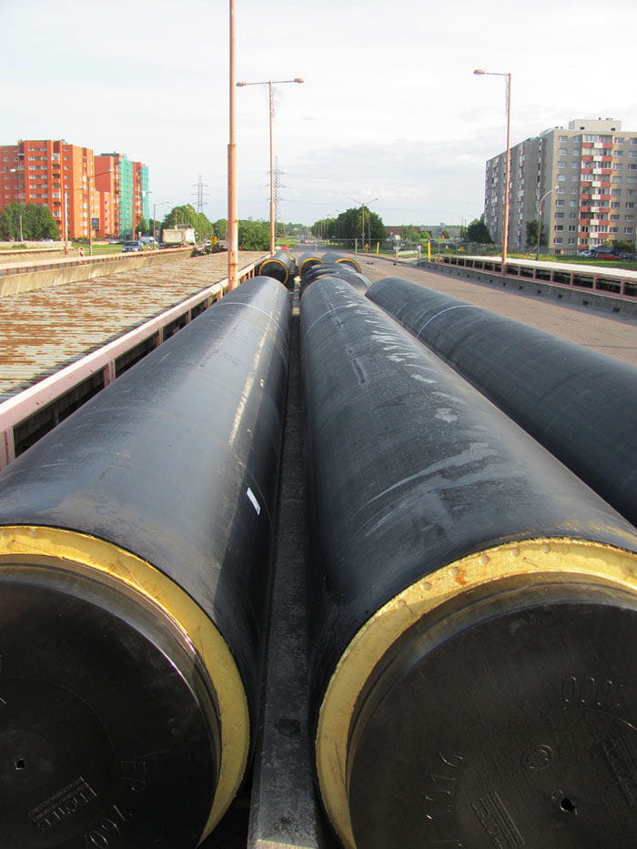 Uponor Infra toimittaa Lasnamäkeen kaikkiaan 1,1 kilometriä halkaisijaltaan DN 1 000 -kaukolämpöputkia. Teräksiset putket on eristetty polyuretaanilla ja niissä on 1 200 mm:n muovisuojakuori.