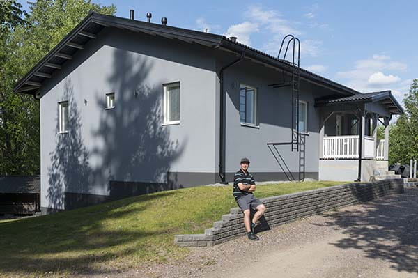 Lämmitysmuodon valinta ja energiansäästö olivat tärkeitä asioita Riku Tuhkasen kaksikerroksisen, 220 m2:n omakotitalon suunnittelussa. Vaihtoehtoja ei lopulta ollut kovin monta. Veden lämmitys mahdollisimman edullisesti ja lämmön siirtäminen asumisen lämmitykseen vaikuttivat lämmitysmuodon valintaan. Päälämmönlähteiksi valittiin katolle asennettavat aurinkokennot sekä vesikiertoinen takka. Näihin yhdistettiin vesikiertoinen lattialämmitys.