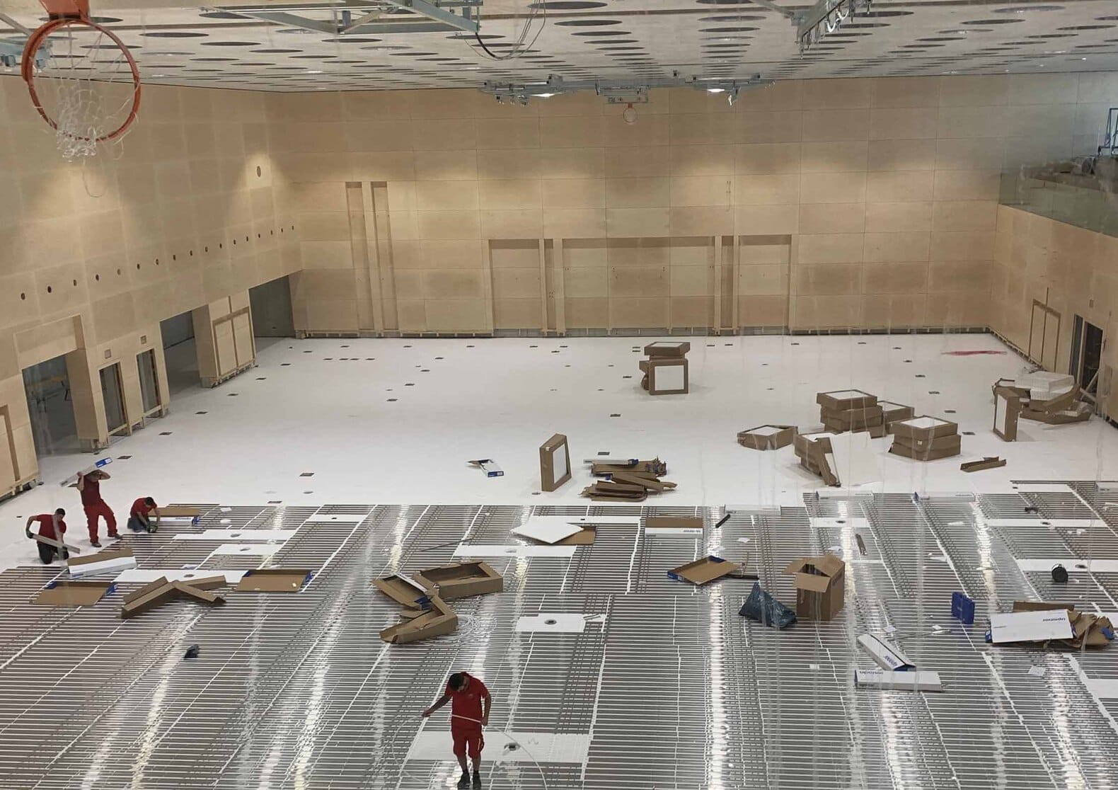In the sports hall, the comfortable temperatures do not come from the ceiling, but from below. The Uponor Siccus sports floor system takes care of both the heating and cooling of the 1450 square metre hall. It was specially developed and tested for the requirements of sports and sprung floors. "Our Siccus system is installed invisibly in the floor and is maintenance-free. There are no system components that could interfere with ball games, for example, or that athletes could injure themselves on. In addition, unlike radiators, the entire usable area remains intact," explains Mair. The Classic underfloor heating system - a wet construction system installed in the screed - supplies the changing rooms and other ancillary rooms on 1800 square metres.