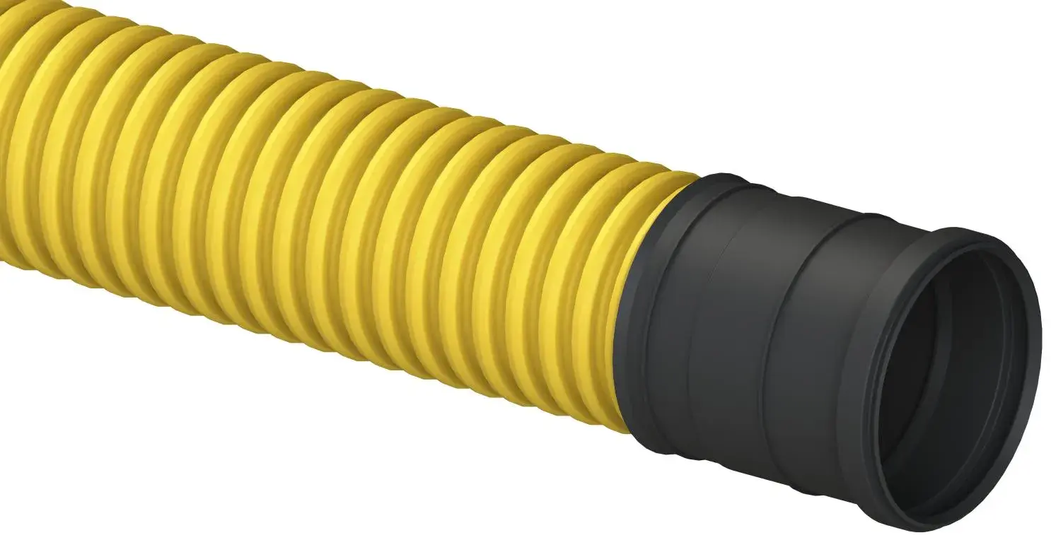 Tuplakerrosrakenteinen kaapelinsuojaputki, jossa on aallotettu ulkokerros ja sileä sisäkerros. Putki sisältää kiinteän muhviosan ja tiivisteen. Materiaali polyeteeni.