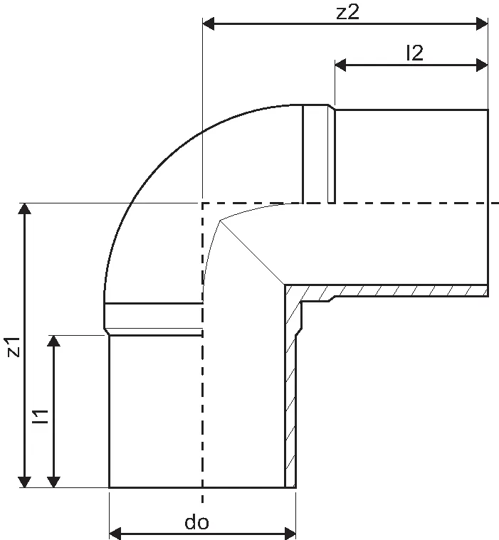 Mounting dimensions Pressure elbow 90 deg PN10 SDR17