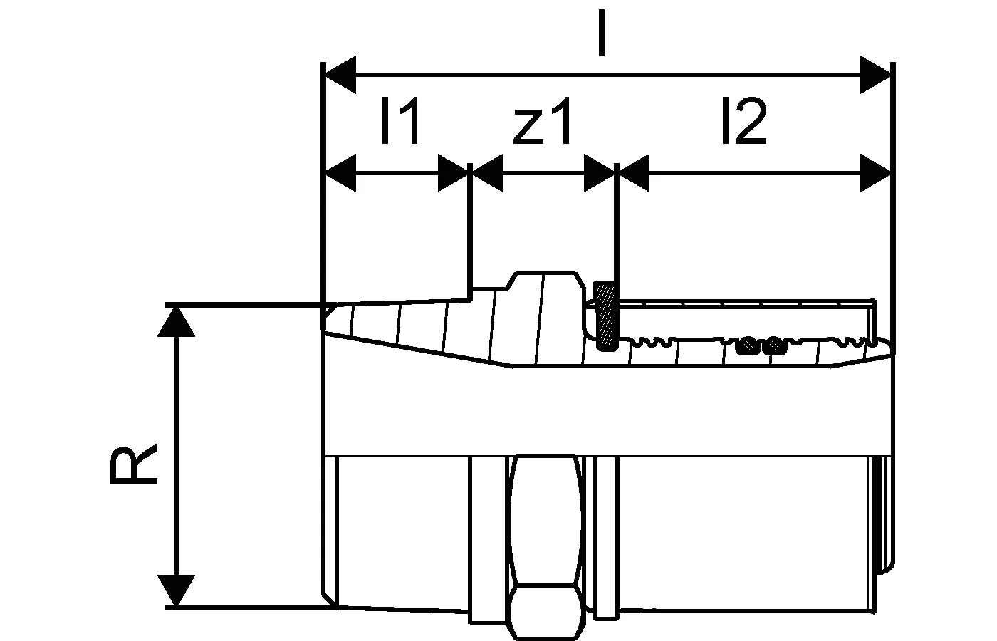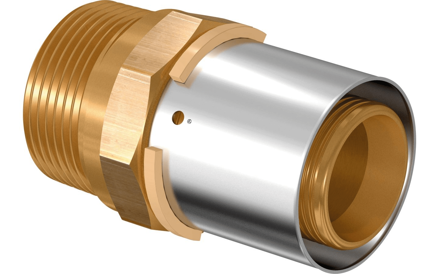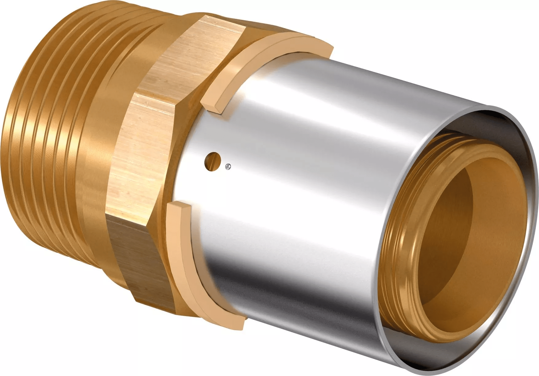 - Kiinteä puristusholkki tarkistusikkunalla- Puristamaton liitin vuotaa painekokeessa- Värikoodi koon tunnistamiseksi- Puristusholkin jälki toimii puristusilmaisimena