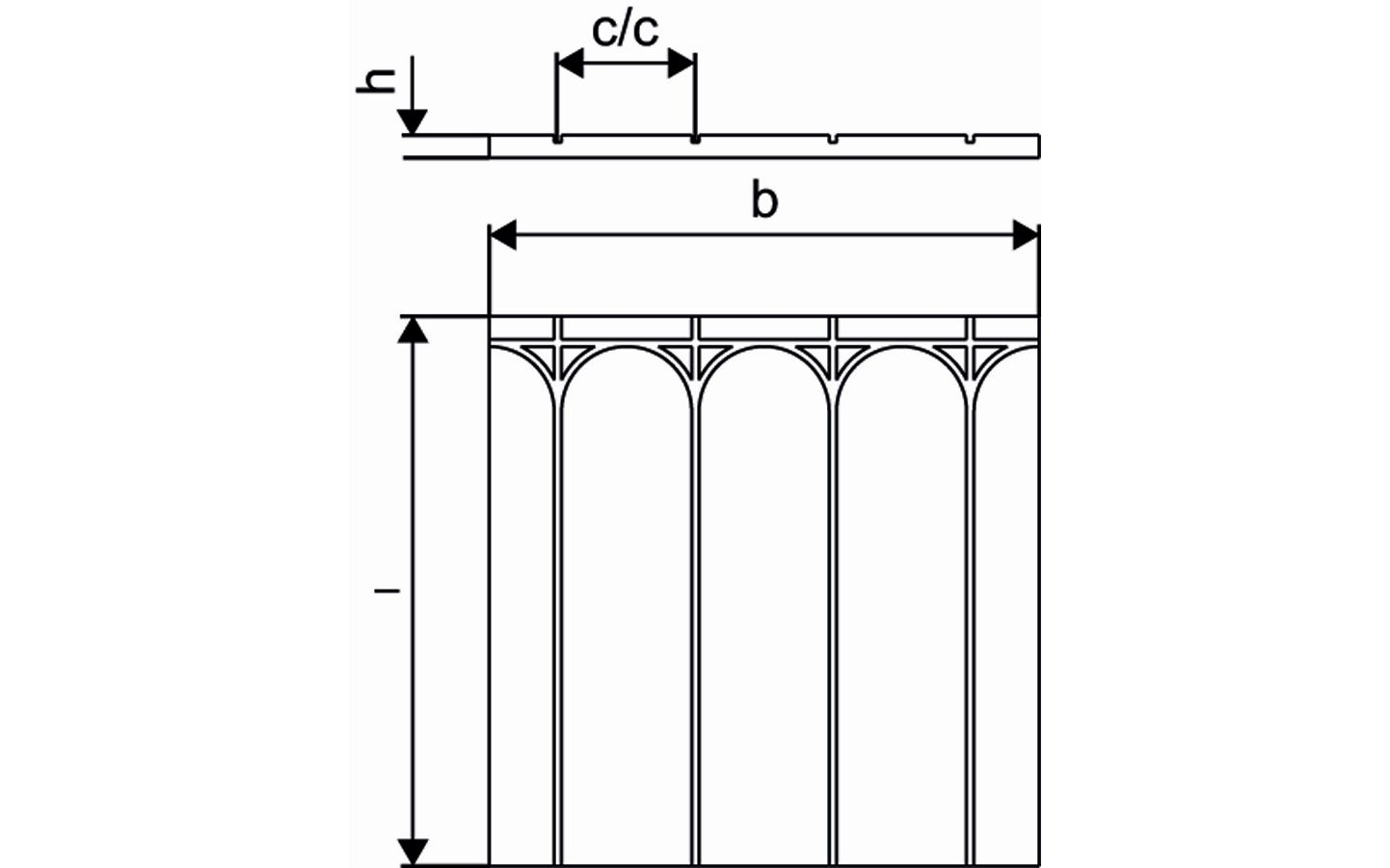 - PS-lattialämmityslevy, johon kiinnitetään alumiiniset lämmönluovutuslevyt. - Paloluokka E (EN 13501-1) - Putkien koko 20x2,0 mm ja asennusväli k-k 300 mm