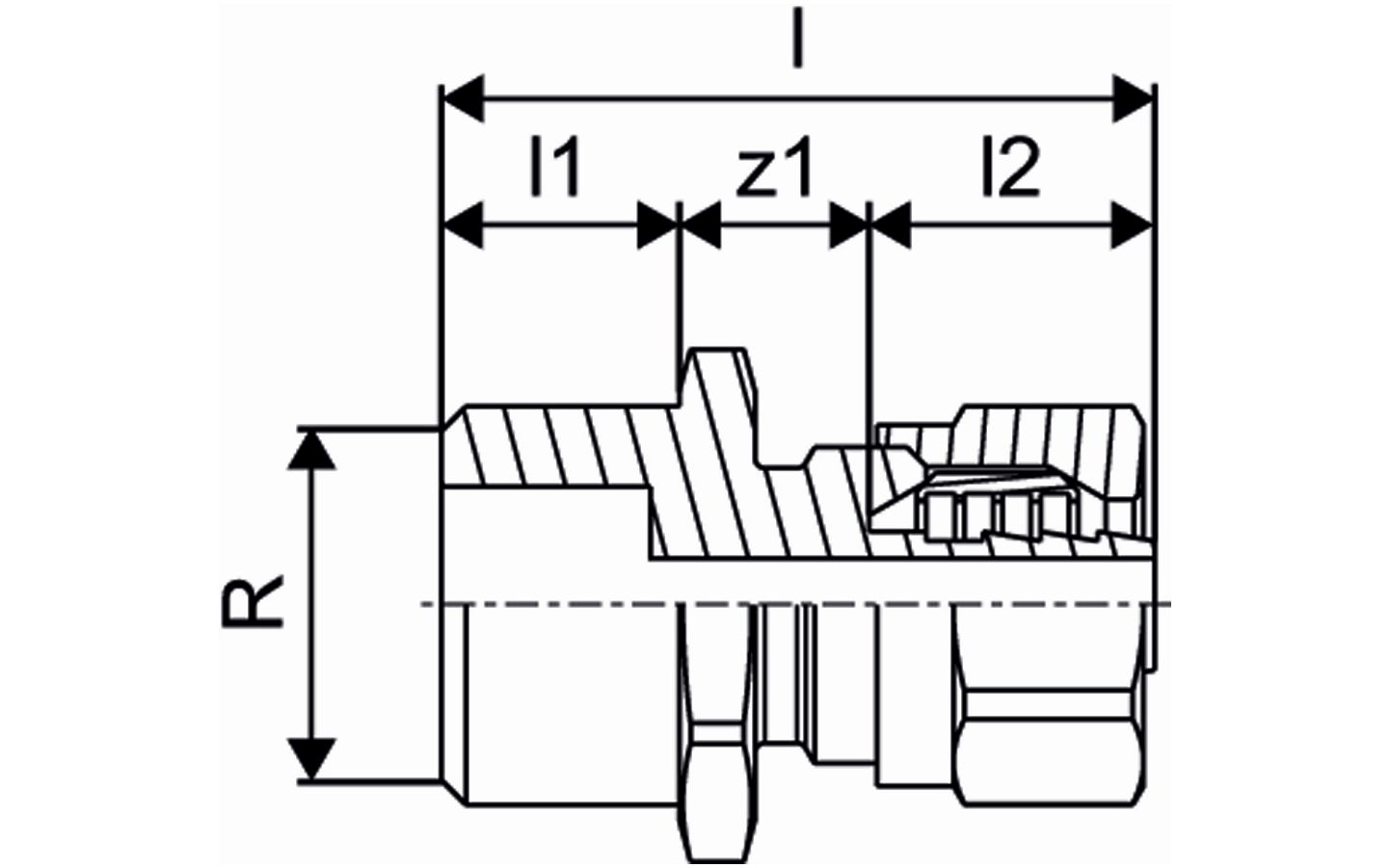 Uponor Minitec puserrusliitin, uk 9,9-R1/2"MT
