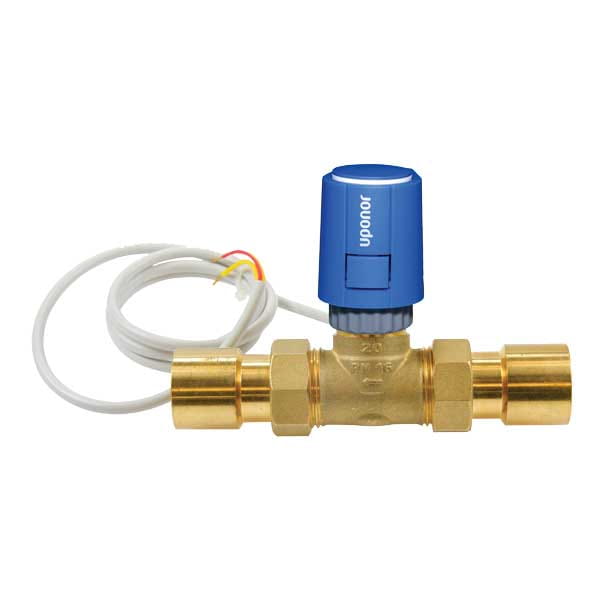 Les vannes thermiques par zone (24 VCA) comprennent des raccords soudés à l'étain de 3⁄4 po et 1 po. Elles permettent de contrôler le débit de collecteurs à une zone (collecteurs desservant une seule zone). Les vannes comprennent un interrupteur de fin de course pour actionner un relais (pompe), l'appareil de chauffage ou d'autres appareils auxiliaires.