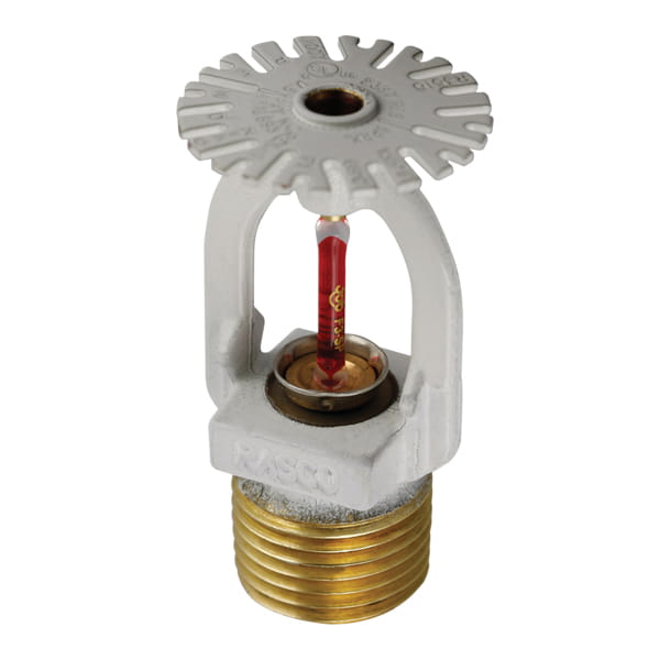 Gicleurs pendants encastrés insérés sur des raccords adaptateurs de gicleur d'incendie d'Uponor. Les gicleurs sont approuvés NSF et UL pour les réseaux combinés de plomberie et de gicleurs d'incendie. Remarque : Bouchon de protection en plastique, rosaces et colliers de tension vendus séparément. Ne pas entreposer de gicleurs là où la température ambiante pourrait dépasser les 100 °F. Clé pour gicleurs requise pour assembler le gicleur et l'adaptateur.