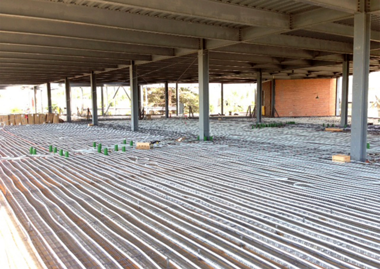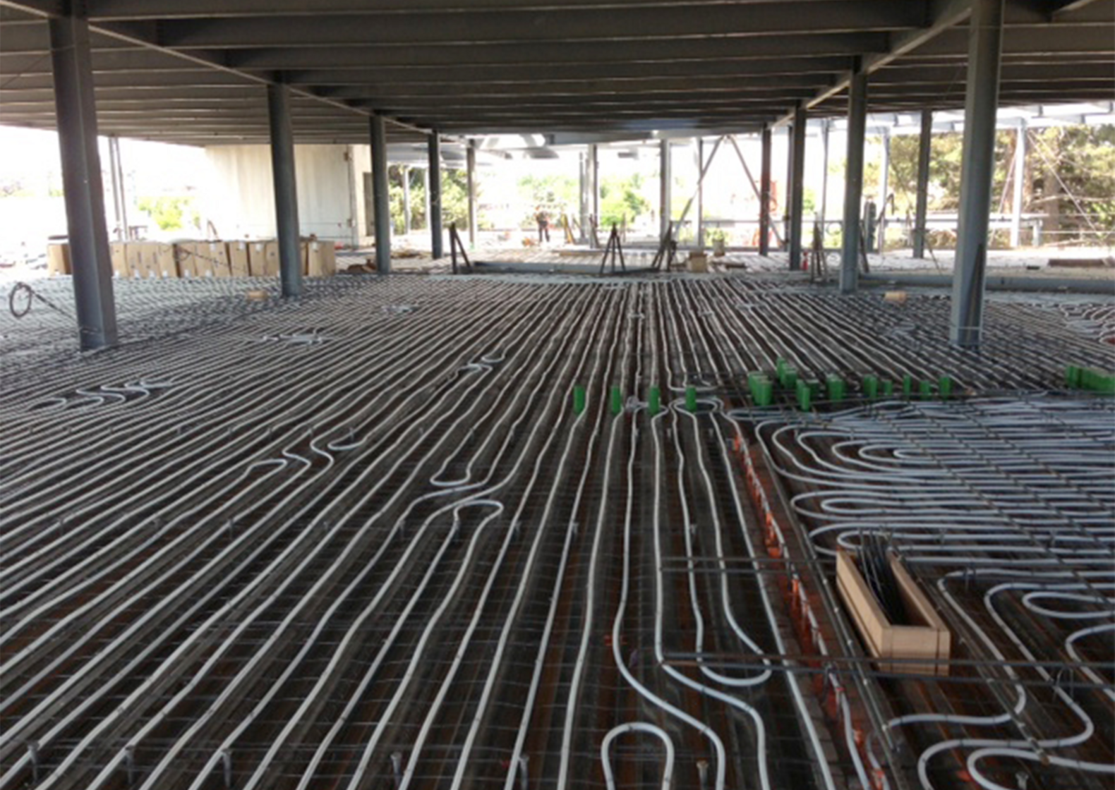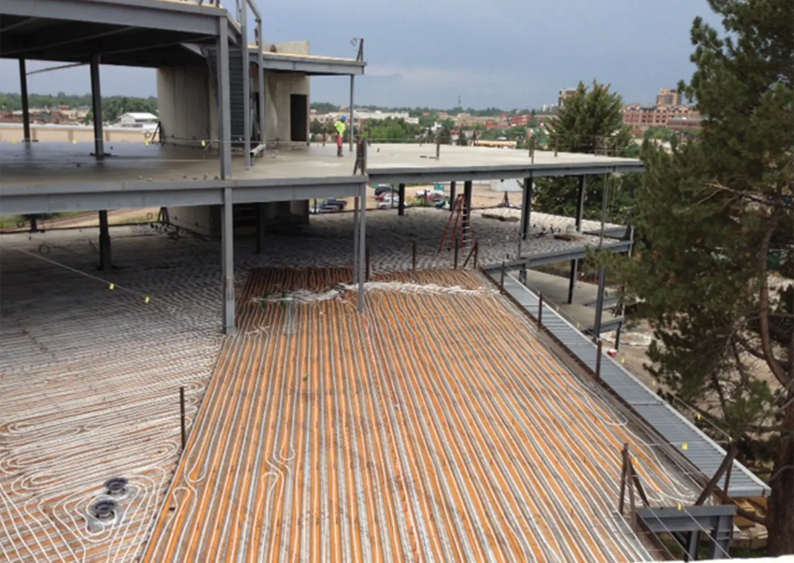 Le bâtiment, appelé le Power House (centrale électrique) parce qu'il met l'accent sur la recherche énergétique, était une occasion unique pour Lind’s de montrer les avantages du PEX dans plusieurs applications différentes. Pour ajouter à la complexité, le composant rayonnant de chauffage et de refroidissement devait fonctionner sans refroidisseur. « Le Colorado, avec son air sec, est une occasion parfaite pour nous d'installer une tour de réfrigération plutôt qu'un refroidisseur. Il est courant pour une tour de réfrigération d'être sur un chantier pour refroidir un refroidisseur, mais dans ce cas, il n'y a pas de refroidisseur », a expliqué Makepeace.