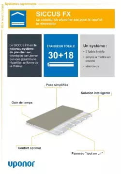 Uponor Siccus FX est le nouvel arrivant dans la large gamme des planchers chauffants Uponor idéal pour la construction neuve et la rénovation.