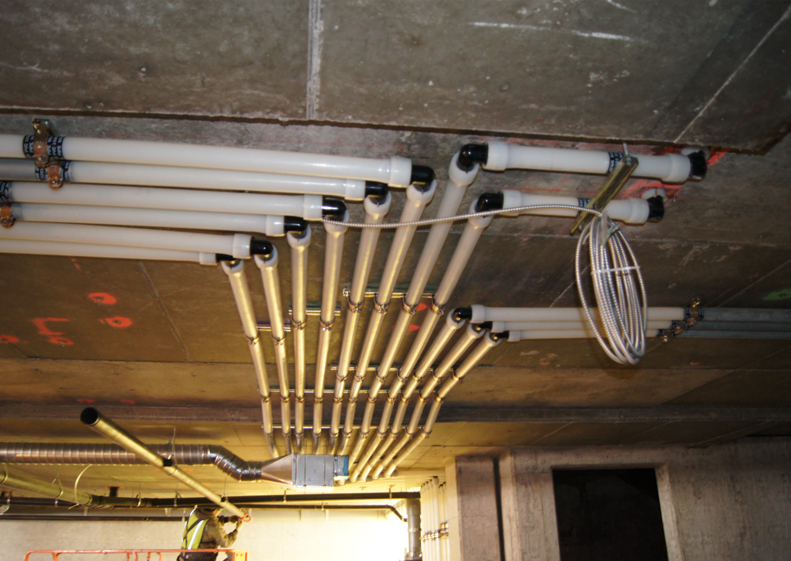 Lorton and his Uponor team provided training on site to ensure that the installers felt comfortable with the process of installing a homerun system. According to Jesse Smith, Wolfe’s project foreman, coordination was the largest challenge on site since the individual riser design demanded a lot of installed pipe. The Wolfe crew needed to work alongside other trades while installing the plumbing system and it was sometimes difficult to coordinate and work around them.