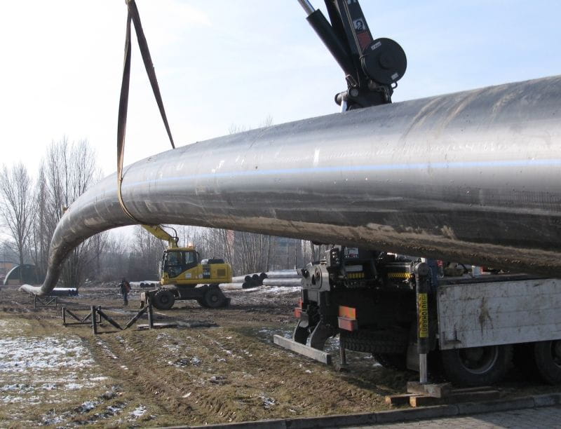 Therefore, it was immediately decided to change the pipe manufacturer. This time WehoPipe PE100 DN/OD 800 SDR17 PN10 pipes, wall thickness 47.4 mm, produced by Uponor Infra (former KWH Pipe Poland), were chosen. On special order, 15-metre pipe lengths were manufactured to shorten the welding time. The pipes were delivered to site a few days later. “It was enough just to look at the pipe surface to see a considerable difference between the KWH and X pipes” said Marek Piekarski. “The pipes delivered kept their round shape, their surface was perfectly smooth while the X pipe surface resembled orange peel. We also noticed that the new pipes had higher plasticity.”