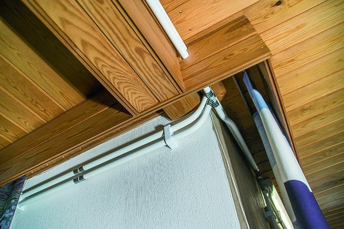 The outcome of the HVAC contractor's work was neat, the Mattsons say. The pipes and parts were already coloured white, so they didn't have to be painted separately. In the Mattson home, the pipes were left partially visible, but they can also be hidden behind shells. In the living room, the pipes were inconspicuously installed behind the curtain rods.