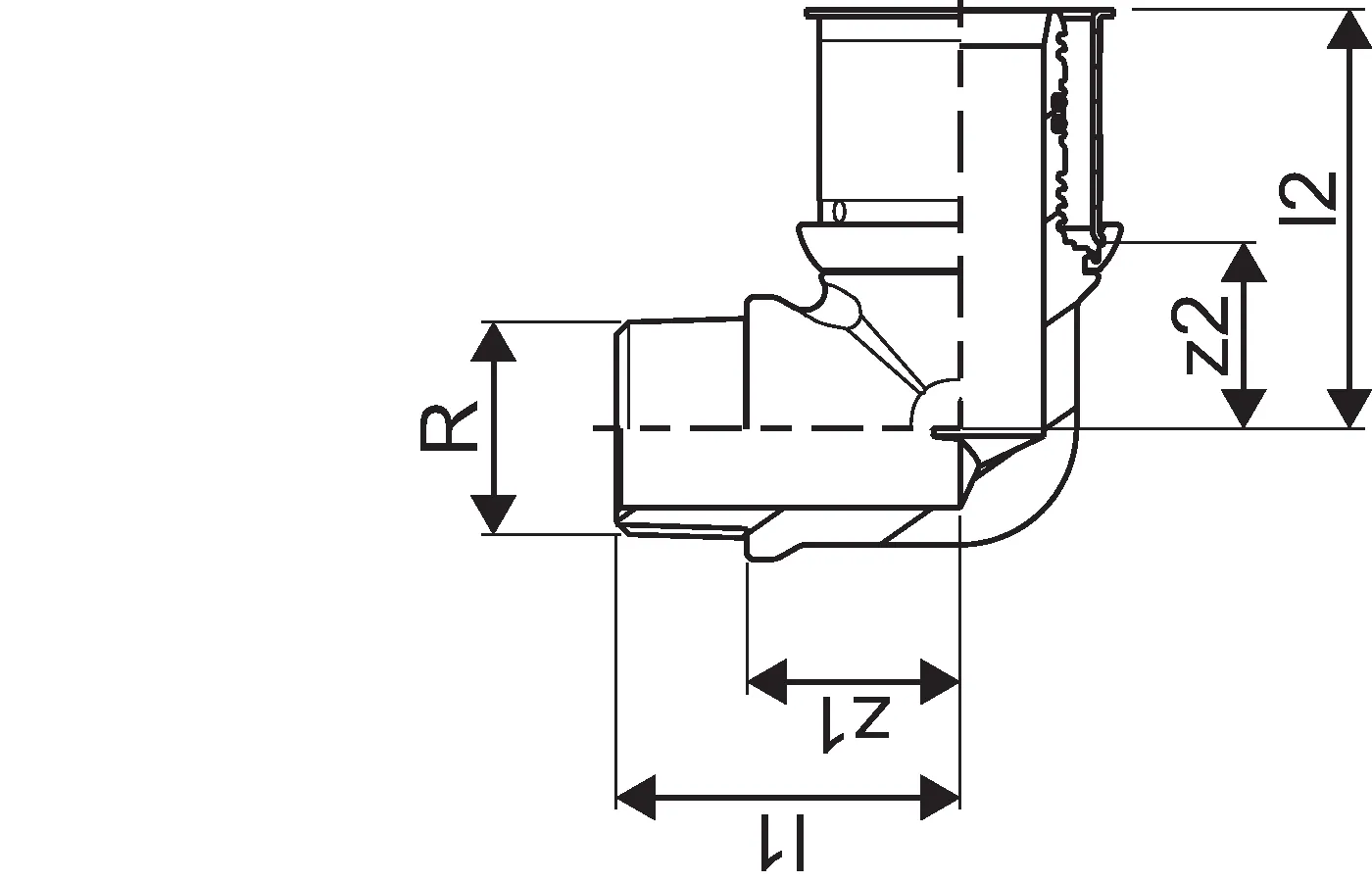 Uponor S-Press PLUS koljeno s vanjskim navojem 25-R1"MT