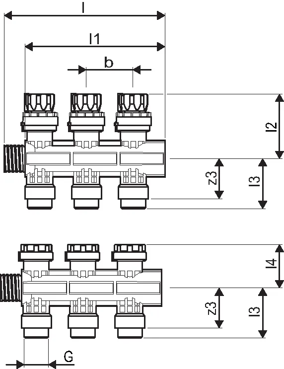 - Moduláris, üvegszál erősítésű poliamid gyűjtőcső 1,3,4,6 körökkel az alapkészlethez való csatlakozáshoz.- csatlakoztatás jobbra vagy balra lapos tömítéssel vagy alulról csatlakoztatható opcionális könyökszettel- Ellátás zárószeleppel a kiegyenlítéshez szabályozógyűrűvel vagy ellátása áramlásmérővel a kiegyenlítéshez. - elzárási és áramlási nézet- állítógyűrű a szerszám nélküli kiegyenlítéshez- előkészített helyek a helyiségnévtáblák számára- visszatérés szelepekkel és kupakokkal, előkészítve a működtetők számára- Körcsatlakozás G3/4" eurokónusz- Körosztás 50 mm- gyűjtőcső osztás 225 mmMűködtetőszerkezet:- Normálisan zárt = áram nélkül zár