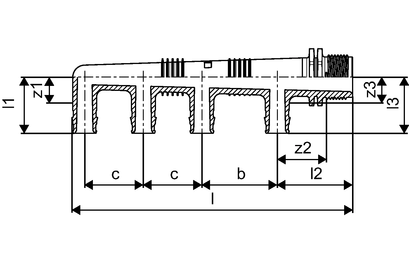 Uponor Q&E Collettore maschio PPSU G3/4"MT 3x16 c/c45+35mm