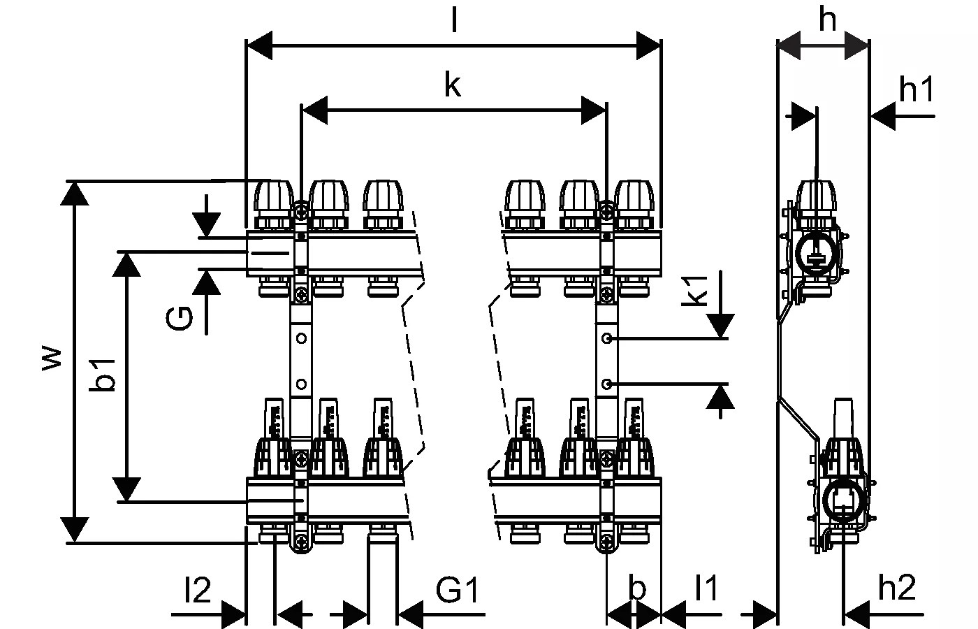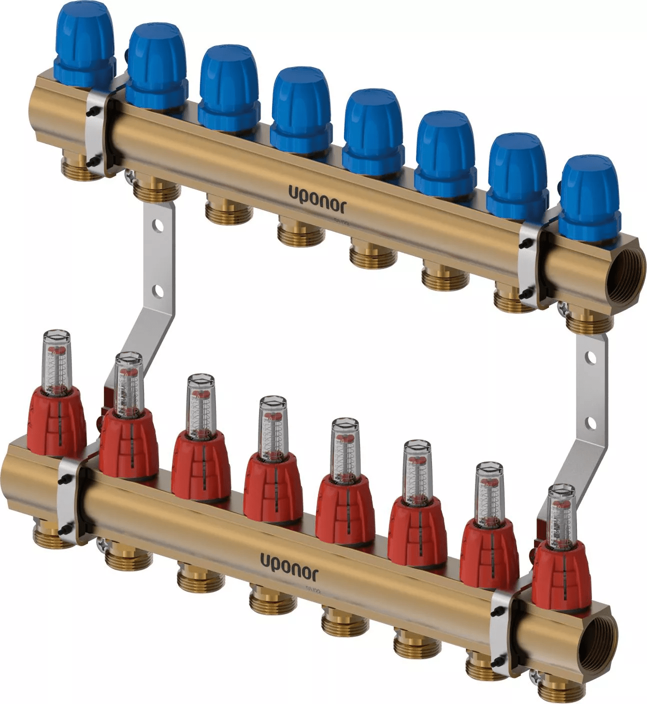 - In ottone- Con valvole integrate- Collegamento a destra o a sinistra con mandata a tenuta piatta- Con detentore o flussometro per bilanciamento e chiusura- nessun collegamento principale per la combinazione con gli accessori corretti- Collegamento ad anello Eurocono G3/4"- Distanza anello 50 mm- Distanza staffa 210 mm