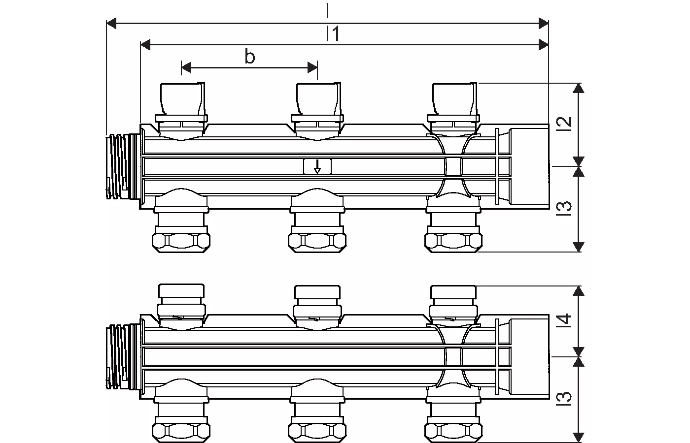 - sistema di riscaldamento industriale Magna- interasse tra le uscite dei circuiti: 100 mm