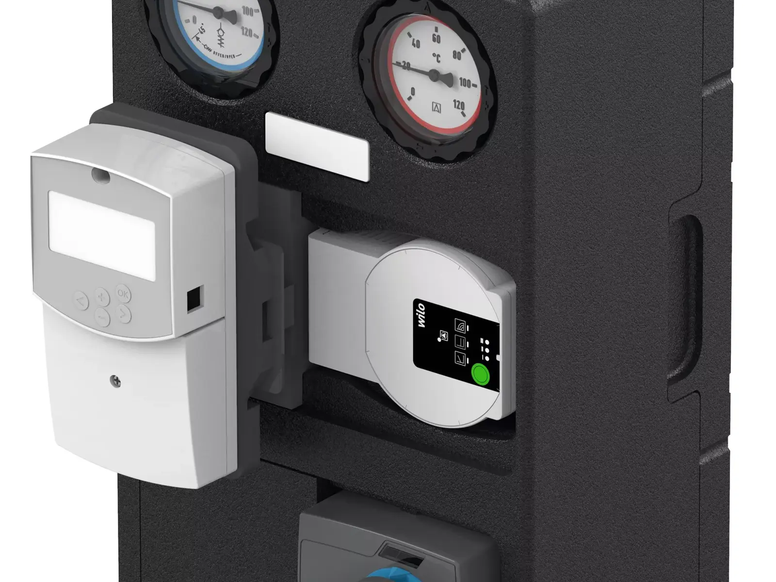 - Gruppo pompe premontato con regolatore della temperatura di mandata Uponor Smatrix Move- Sensore di temperatura esterna (per l'installazione in cantiere)- Sensore di temperatura dell'acqua per la temperatura di mandata- Valvola di miscelazione a 3 vie- Azionamento motore- Controllo pressione proporzionale- Possibilità di aggiornamento a riscaldamento/raffrescamento