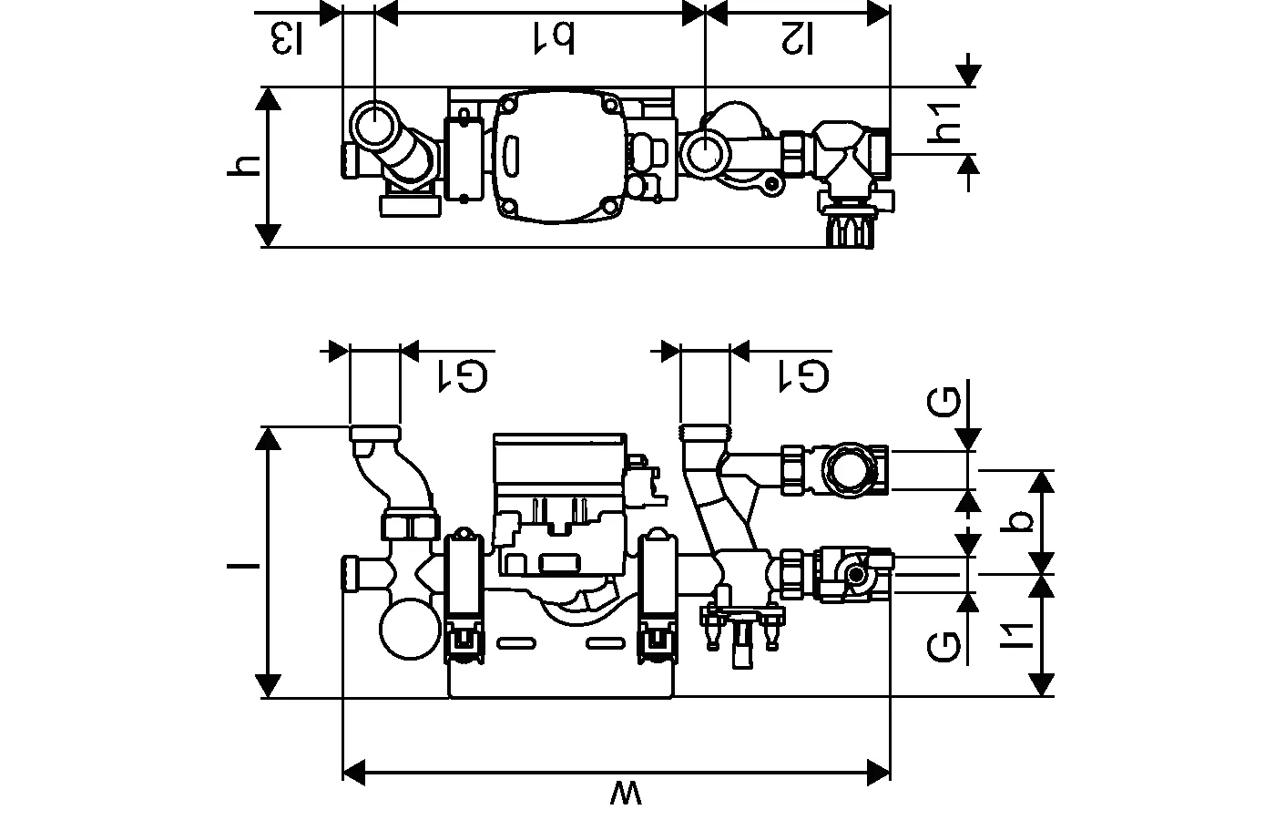 - Premontato- Gruppi pompa Fluvia Move con regolatore di mandata Uponor Smatrix Move- Fluvia T può essere installato con staffe a sinistra o a destra sull'impianto