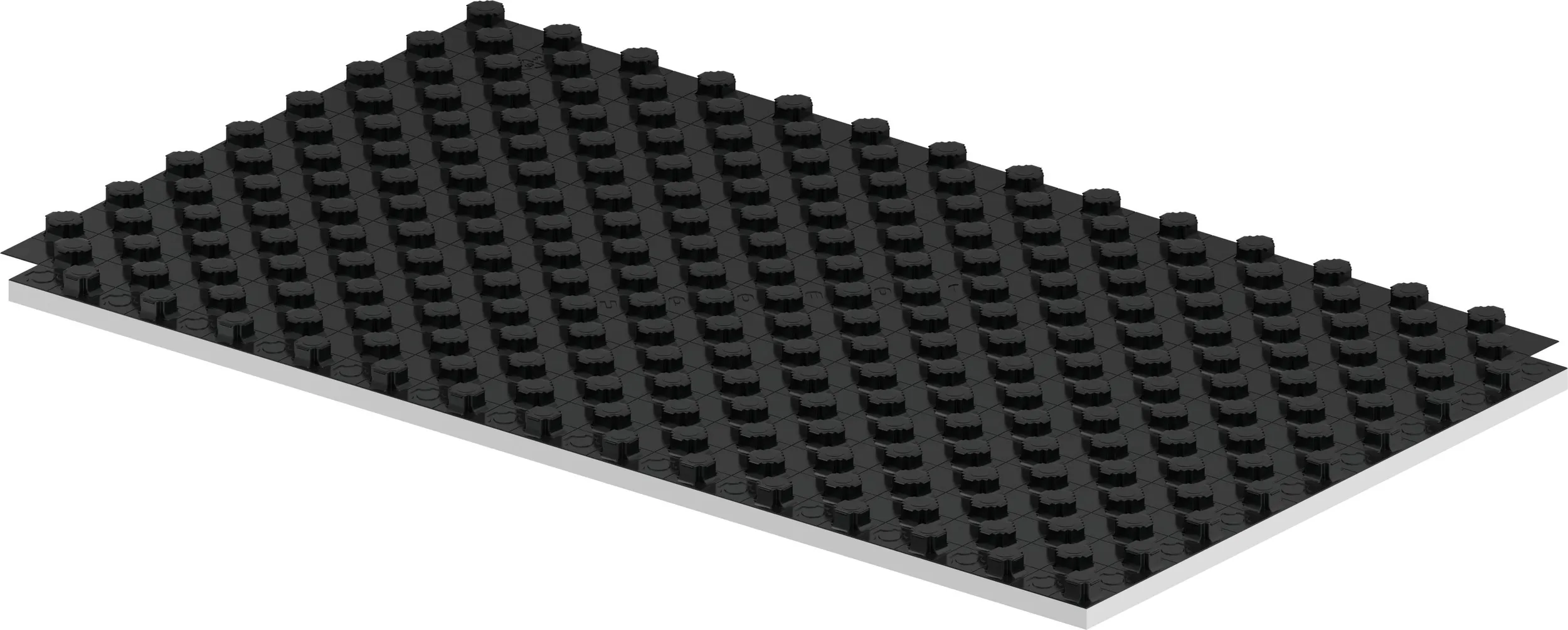- pannello preformato, composto da un foglio in PS antiurto rigido nero opaco- stampato sottovuoto, su isolante in EPS a conducibilità termica migliorata- isolante alta densità antischiacciamento- spessori: 11-23-38 mm di spessore effettivo di isolamento - la sagomatura delle bugne permette una agevole posa della tubazione a maglia ortogonale- ottimale adattabilità a tutte le superfici, con minimo scarto di materiale- posa semplice e veloce dei pannelli attraverso l’incastro maschio – femmina del foglio protettivo superiore- reazione al fuoco: euroclasse E secondo EN 13501-1 (EPS)- esente da CFC, riciclabile- modulo di posa: 50 mm- modulo diagonale 75 mm (con clip aggiuntiva)- lunghezza pannello: 1450 mm - larghezza pannello: 850 mm- spessore totale pannello: 33-45-60 mm- resistenza termica pannello: 0,35-0,75-1,25 m2K/W- resistenza a compressione (def.10 %): 150 Kpa ai sensi della norma EN 826- conformità CE
