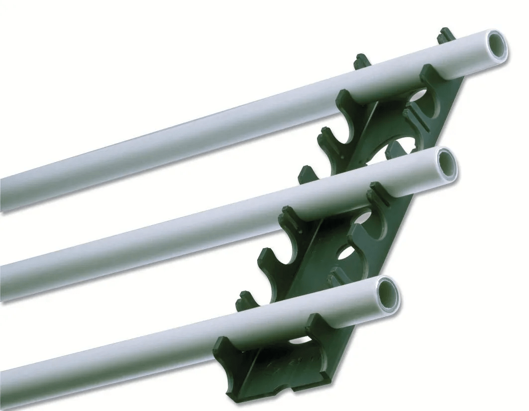 Barra di ancoraggio in plastica per l'ancoraggio di tubi Ø16 e Ø17 a pannelli piatti o rotoli di isolamento. Utilizzare la striscia adesiva e le clip di ancoraggio (vedere il codice 340 421 002) per tenerla in posizione sui pannelli/rotoli di isolamento.Distanza consigliata delle barre di ancoraggio: 5 cm o multipli di essi. * su richiesta