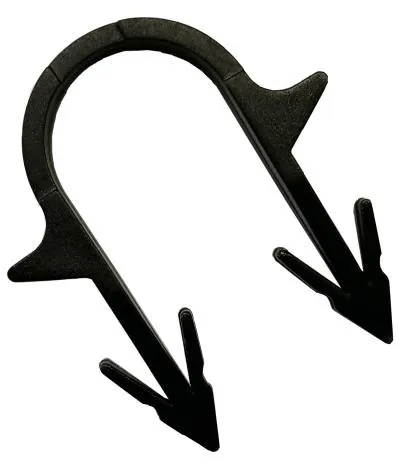 Speciale clip di ancoraggio in plastica da caricare nella relativa cucitrice per fissare i tubi del sistema di riscaldamento su pannelli piatti o pannelli in bobine.