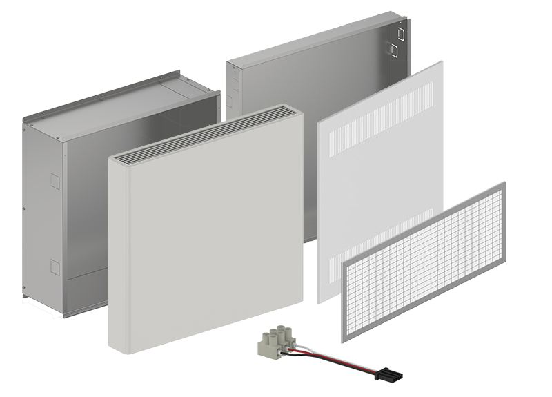 - Facilità di installazione: struttura leggera e compatta in PPE, progettata per una semplice installazione in controsoffitti o pareti incassate. I dispositivi a soffitto sono forniti preassemblati con bocchette di aspirazione e mandata predisposte per il collegamento alle canalizzazioni, mentre le versioni a parete sono disponibili per installazione incassata o semi-incassata.