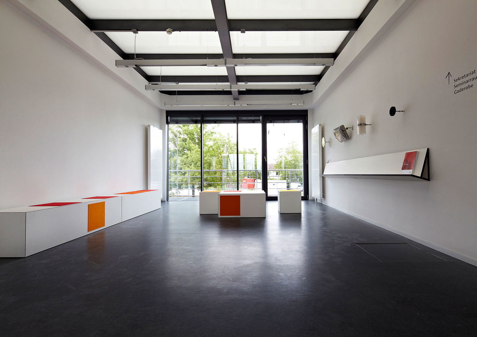 The foyer, information centre and conference room at the Energy Efficiency Centre in Würzburg uses the Uponor Klett line for energy-efficient radiant heating and cooling.