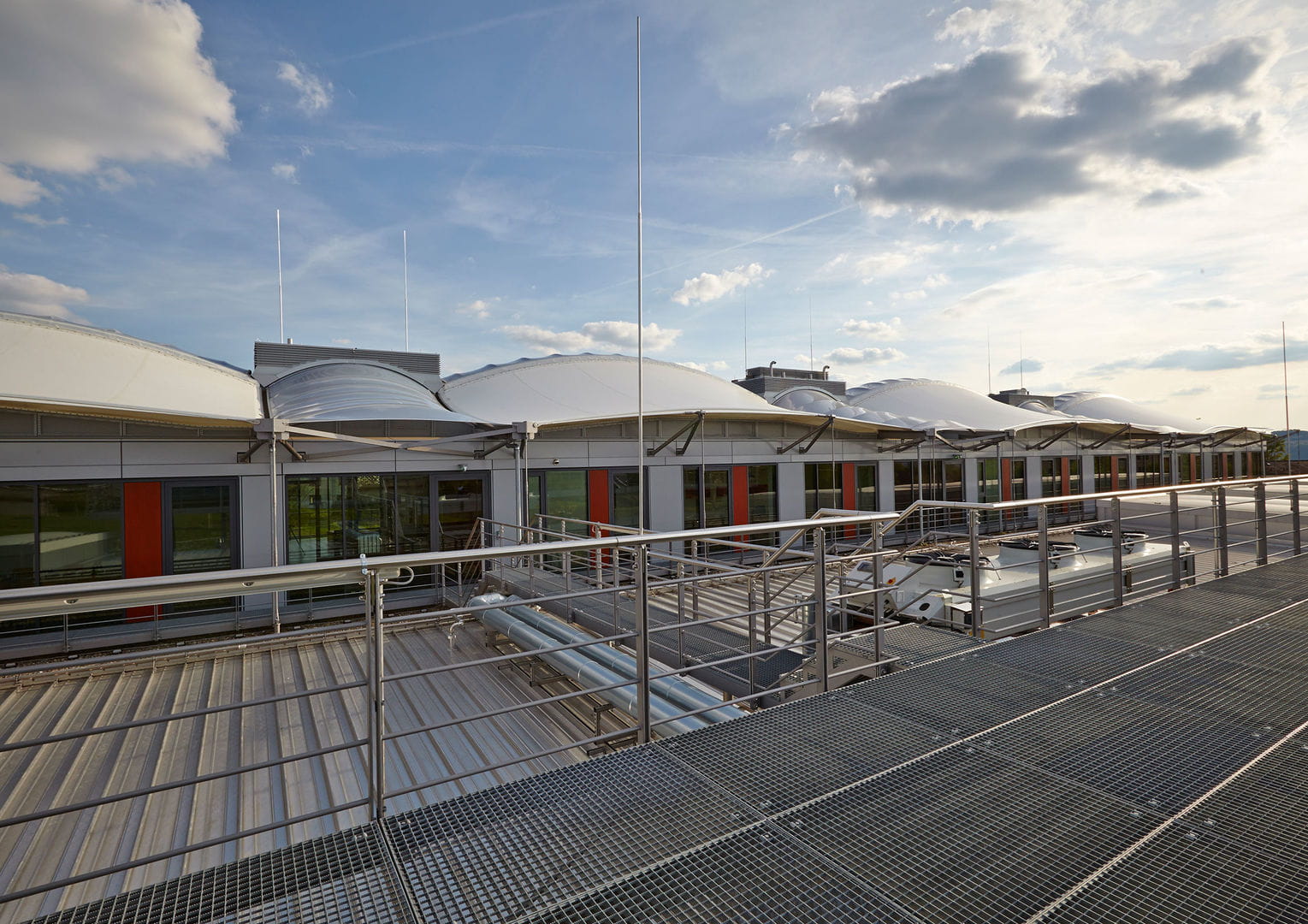 Designed by Thomas Rampp, the 3,580 m2 building represents a real game-changer thanks to its bright roof membrane. The translucent outer skin spans the multi-layered roof superstructure, providing weather protection. The revolutionary membrane coating is one of several unusual concepts and products being used for the first time.