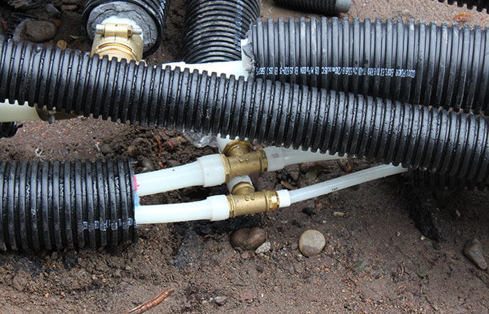 Uponor's Quick & Easy joint technology was used at the site. The particularity is that, thanks to the joint technology, there was no need to assemble T-shaped pieces separately from parts. T-shaped joints made of PPSU plastic were used instead. This significantly reduces the number of joints remaining underground. The mains run all over the plot, and several branches were built.  One of the advantages of Q&E joints is that they are quick to install. Easy-to-use tools can always be installed without problems. The joints have also proved to be reliable in pressure tests.