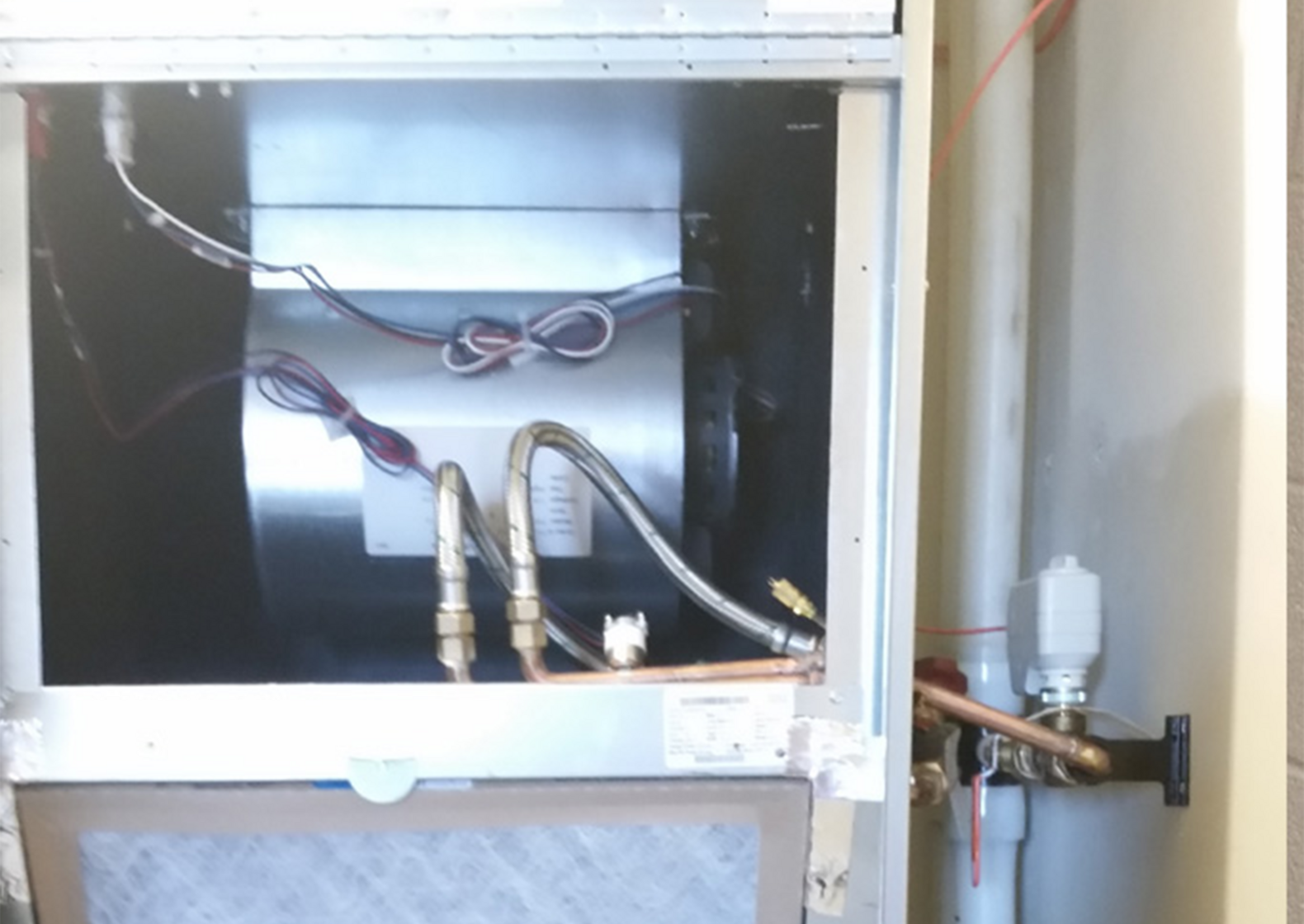 Upon completion of each installation, the system was filled and pressure tested to check for possible leaks, and the piping system was insulated before reinstalling the ceiling panels and sections of drywall.