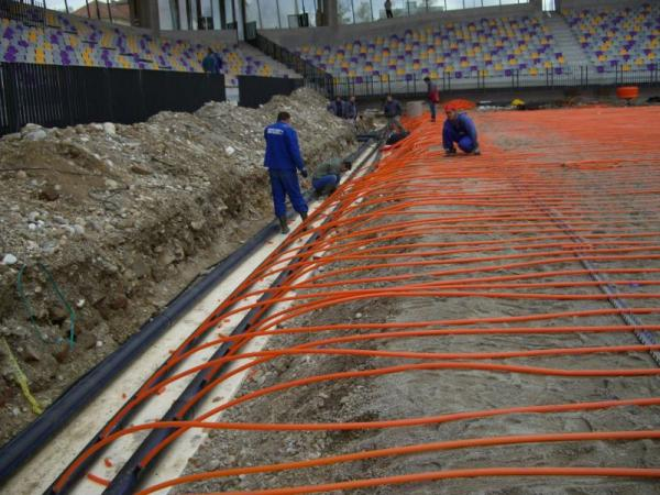 For the renovation of the football stadium in Maribor, Slovenia, turf conditioning with Uponor Meltaway system has been used.