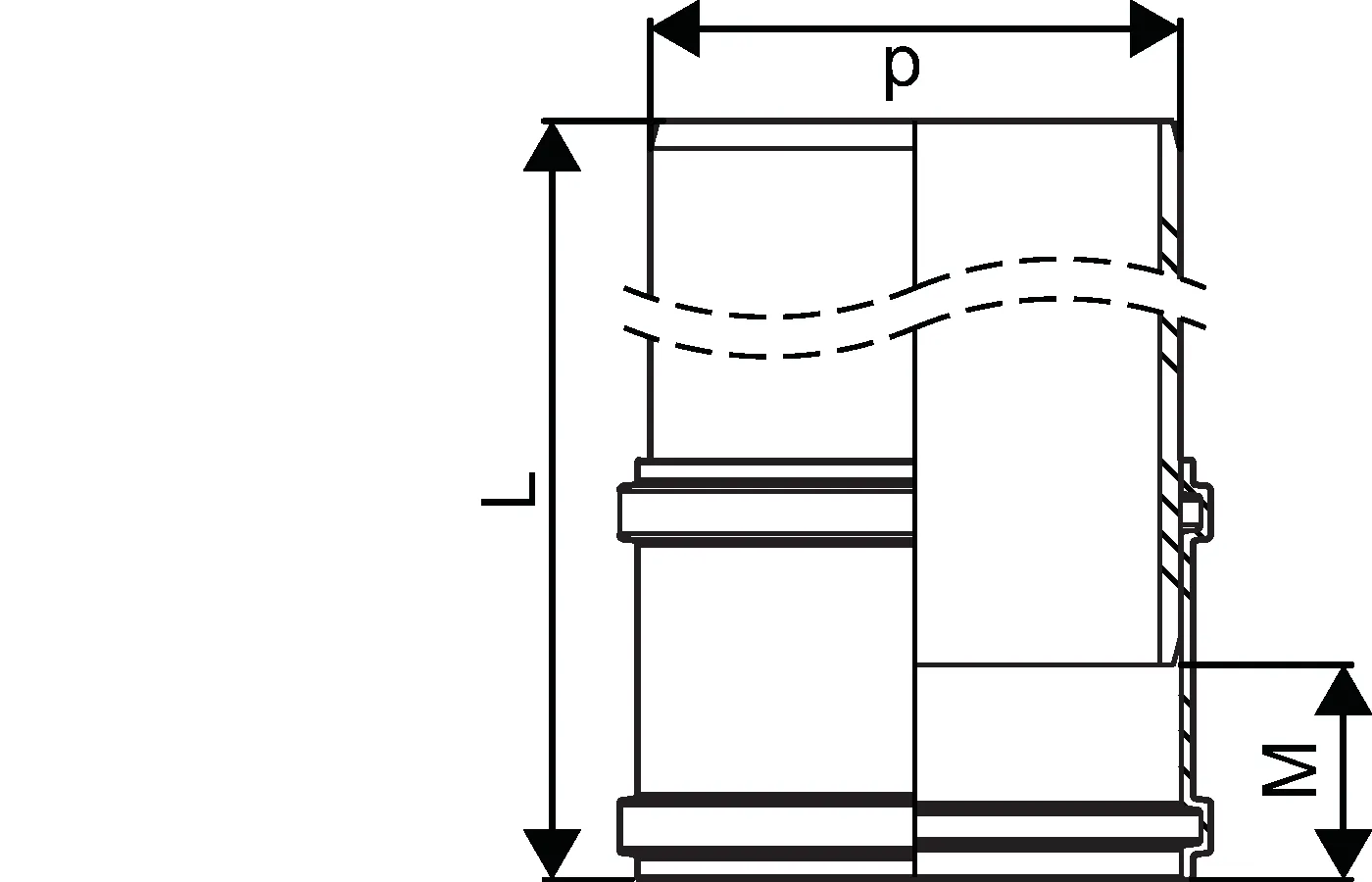 Sewer Double Socket Pipe ID 200-400 mounting dimensions