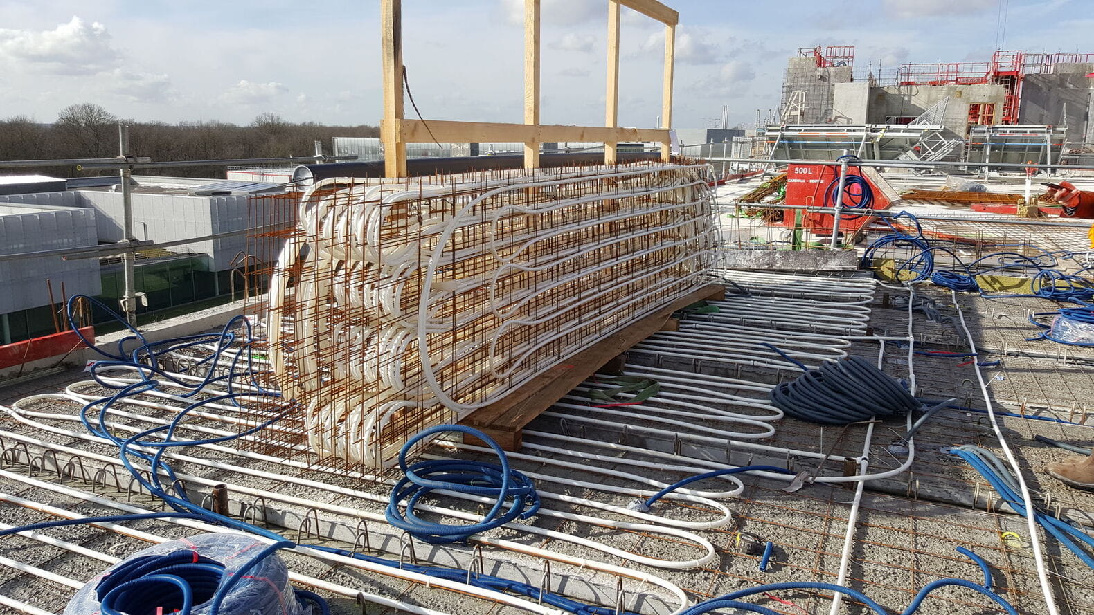 Grâce au travail de François Murguet, c'est pour sa qualité et ses performances que la Dalle Active Uponor a été préconisée par le bureau d'étude OTEIS. Notre système Contec va permettre la diffusion de la chaleur et du rafraîchissement par le plancher et le plafond fournissant une émission douce et confortable pour les usagers Avec ses 40 000m2 de plancher, ce bâtiment représente un véritable défi technique, il a en effet fallu réaliser les plans pour 1878 modules répartis en 265 références différentes représentant 15 862 m2 de surface active.