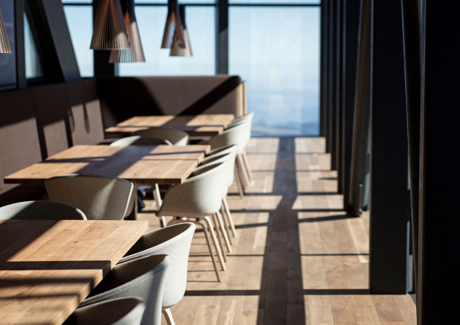 Cosy temperatures in the mountaintop restaurant