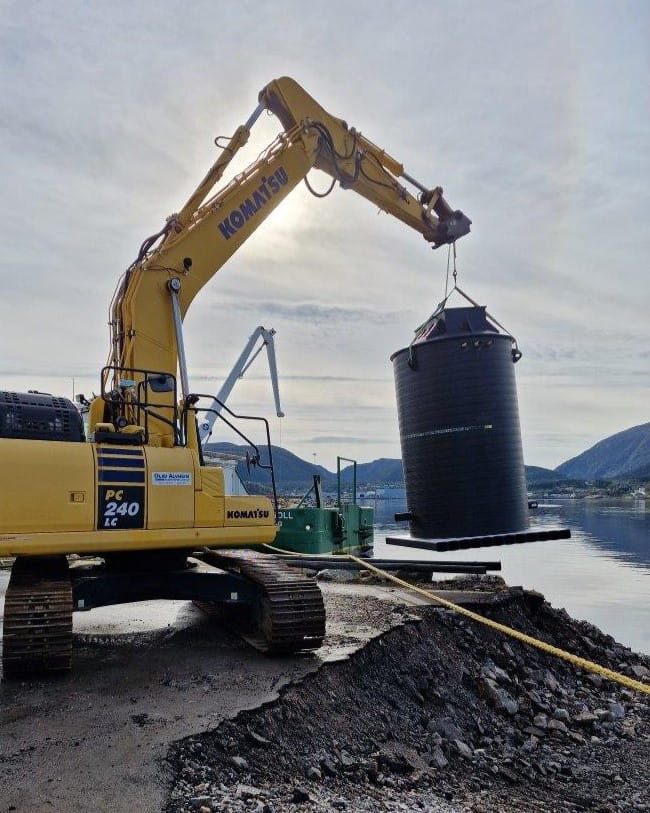 Vi leverte en sjøkum til bruk ved Algea sin fabrikk i Kristiansund. Den 4250 mm høye kummen brukes til innpumping av sjøvann for nedkjøling av industrielle maskiner.