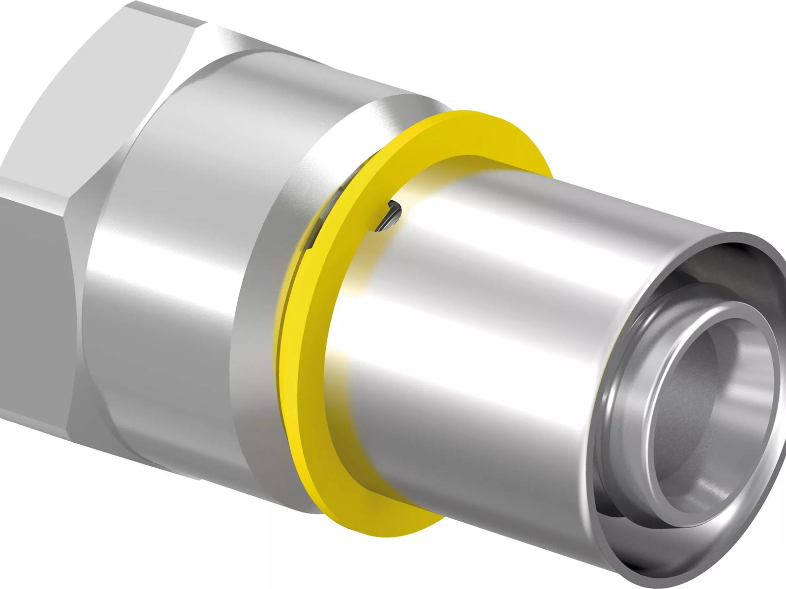 - Materiaal: messing vertind- Met vaste pershuls van RVS- Persaanslag en gele O-ring van HNBR