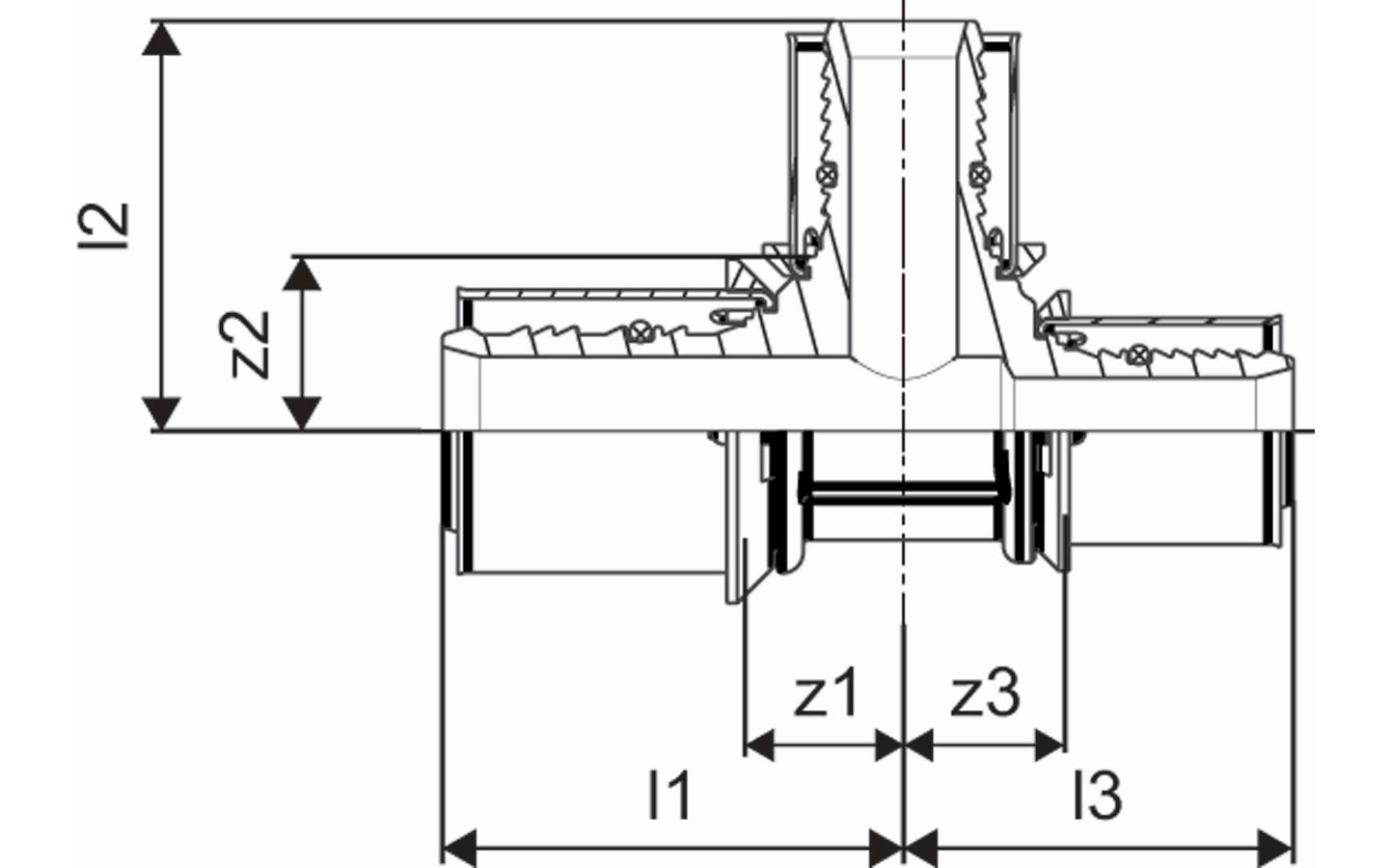 Uponor GAS Press T-stuk verlopend 32-25-32