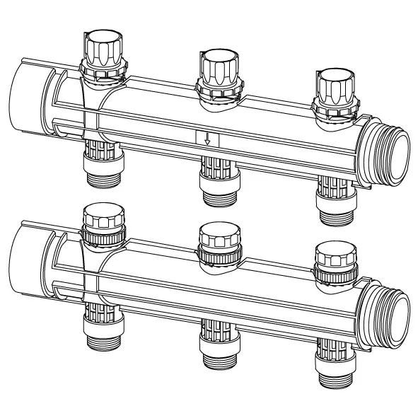 - Magna verwarmings- en koelsysteem voor industriële ruimtes- Voor 2 - 5, 6 - 9, 10 - 14, 15 - 19 of 20 verwarmingscircuits- Afstand tussen spruitstukken 100 mm