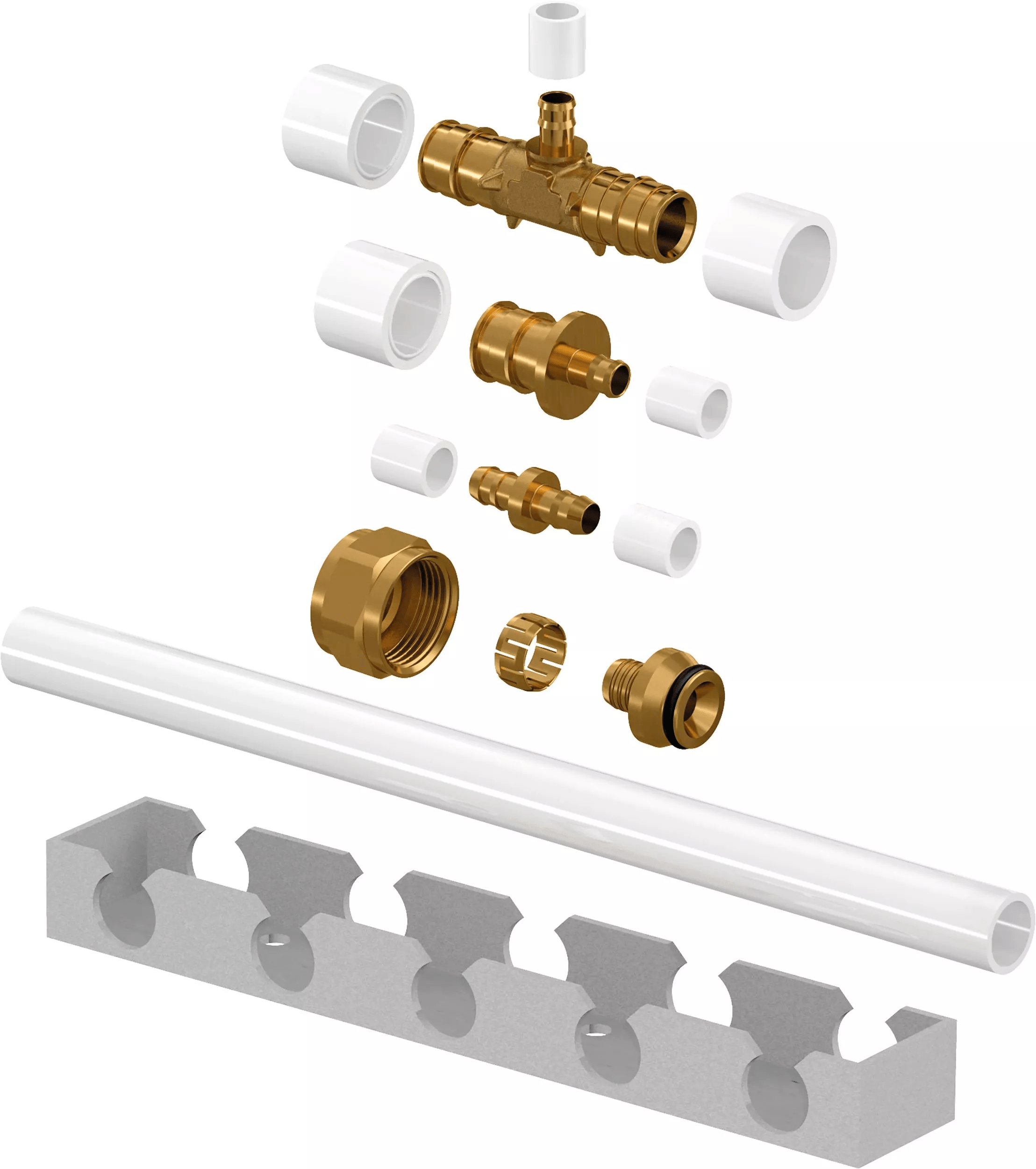 - Voor de aansluiting van Uponor Renovis panelen op het bestaande verwarmingssysteem- Set voor max. 15 m² verwarmingsoppervlakte- Voor de aansluiting van 1 verwarmingsgroep met 4x3 Renovis panelen (ΔT 10 K) of- Voor de aansluiting van 1 verwarmingsgroep met 6x2 Renovis panelen (ΔT 5 K)Bestaat uit:- 60 m PE-Xa leiding 20x2,0 mm- 15 st. montageprofiel 20 (L = 250 mm)- 2 st. Q&E koppeling verlopend 20x9,9 mm- 10 st. Q&E koppeling 9,9x9,9 mm- 15 st. Q&E T-stuk 20x9,9x20 mm- 2 st. klemringschroefkoppeling 20 mm - 3/4"bi.dr.
