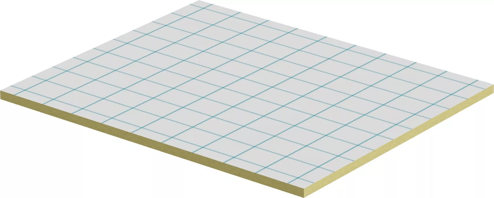 - Isolatieplaat, bestaat uit Klett-folie voor klittenbandbevestiging gelamineerd op EPS (HBCD-vrij) volgens EN 13163- Brandclassificatie volgens EN 13501-1: klasse E- Normaal ontvlambaar, bouwmateriaalklasse B2- Folie op de plaat voorzien van 100x100 mm rasteropdruk- Enkele plaat- Met beproefde en gecertificeerde contactgeluidisolatie- Zelfklevende strook langs de rand- DIN CERTCO: 7F468-F- Getest lage-emissie vloerverwarmingssysteem met testrapport