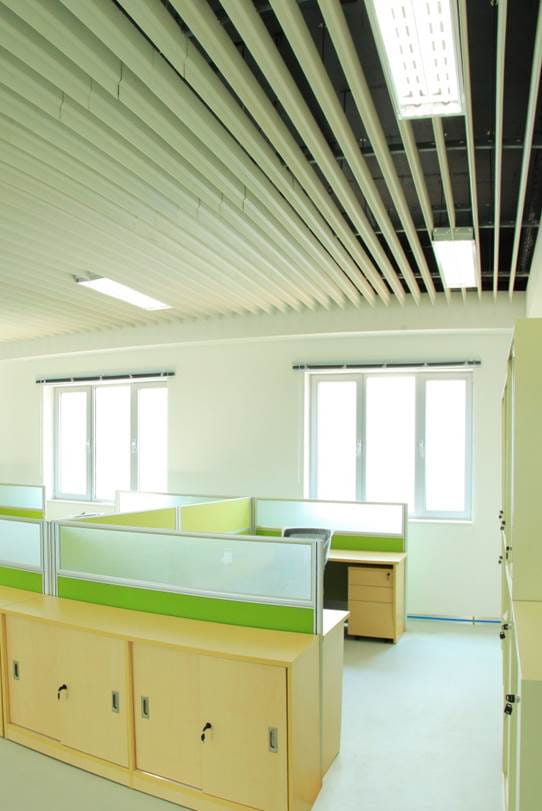 Apart from TABS, OPTI Y ceiling installation (173m2 active panels installed) was utilized at certain area to strength the heating and cooling performance. The radiant heating and cooling ceiling covers the sensible peak cooling/heating load of the office area. The system is fast reacting and adapts to load fluctuations in the office area. This provides unique individual user comfort. The active ceiling panels are distributed by a 4-pipe system which allows cooling and heating in different areas at the same time according to the users need.